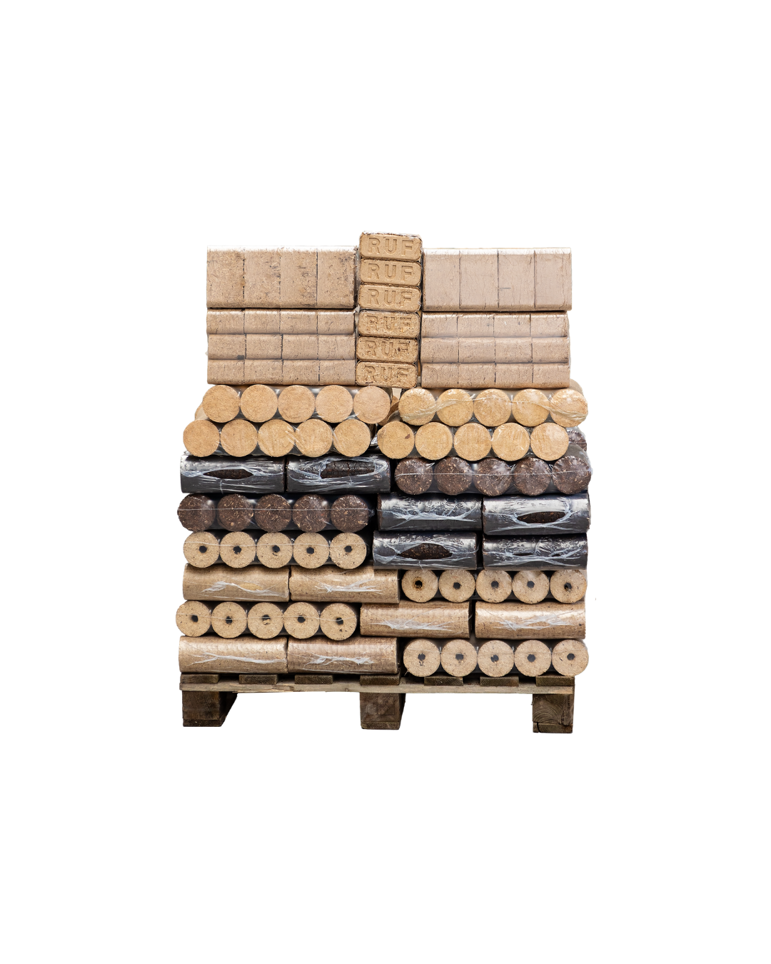 Mit dieser gemischten Palette Holzbriketts testen Sie gleich 4 verschiedene Sorten unseres Angebots.